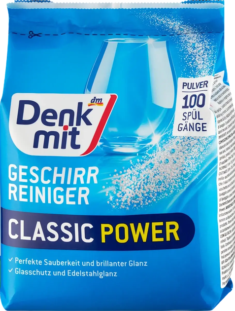Порошок для посудомийних машин Denkmit Classic 1.5 кг порошок для посудомийної машини Denkmit Classic Pulver з активним кислородом, ефективний навіть при низьких температурах захист скла, дбайливий до посуду підходить для всіх типів посудомийних машин забезпечує сяючий блиск і ідеальну чистоту. Порошок для посудомийних машин Denkmit Classic Pulver забезпечує ідеальний чистий посуд і діамантовий