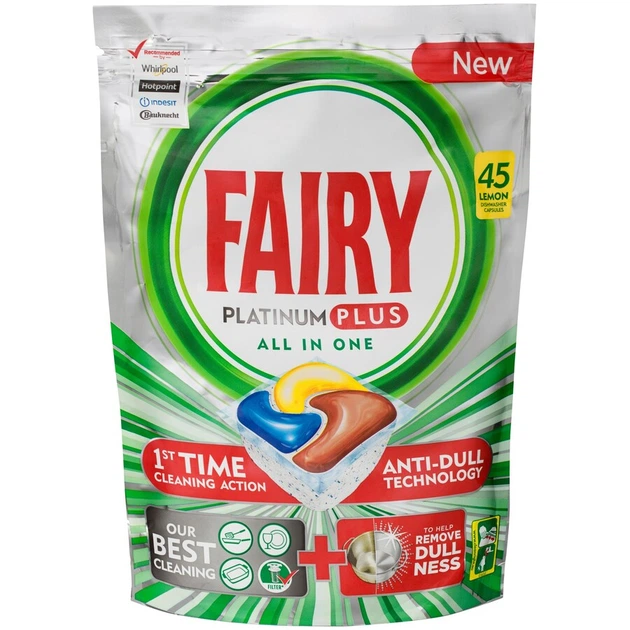 Капсули 4 камерні для посудомийних машин + захист фільтру від жиру FAIRY ADW Platinum PLUS YELL All in One Box 4уп*45шт