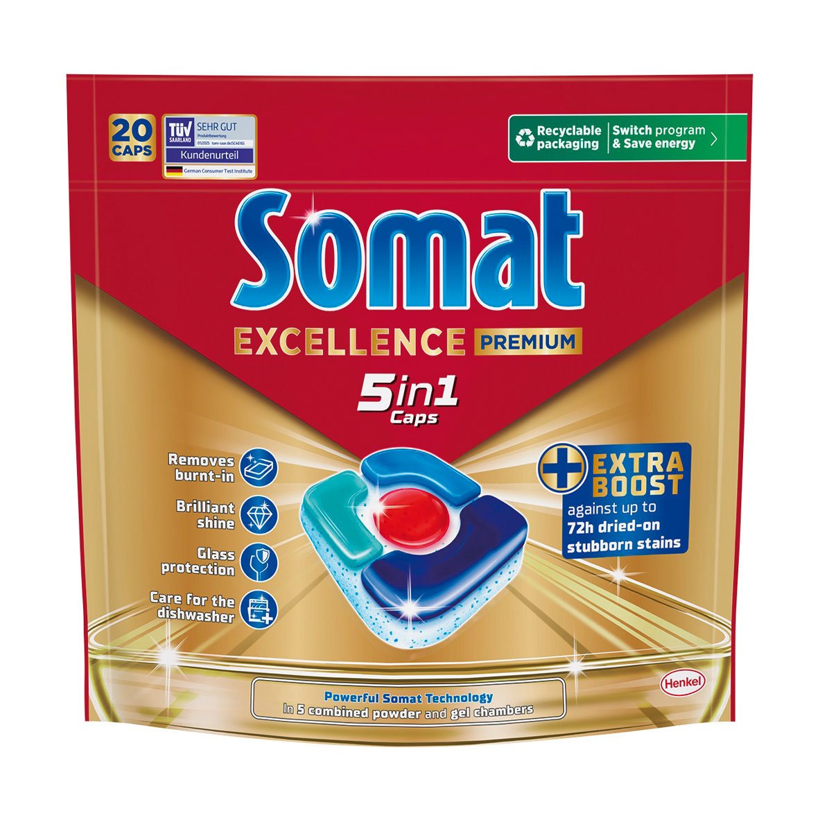Таблетки для миття посуду в посудомийній машині Somat Excellence Premium 5 In 1 Caps, 20 шт