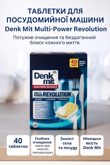 Капсули таблетки для миття посуду Denk Mit Multi-Power Revolution 40 шт професійні ефективні потужні преміум універсальні