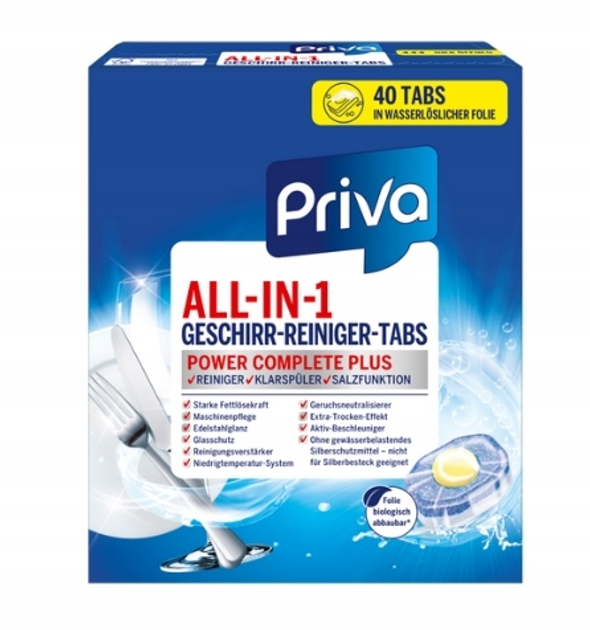 Таблетки для посудомийної машини Priva Power Complete 12 в 1 40 шт