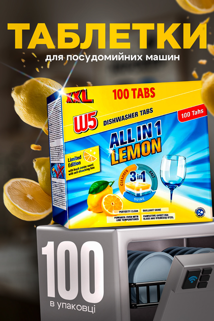 Таблетки для посудомийної машини 100 ШТ. засіб для миття посуду засіб для чищення посудомийної машини All in 1 Lemon W5