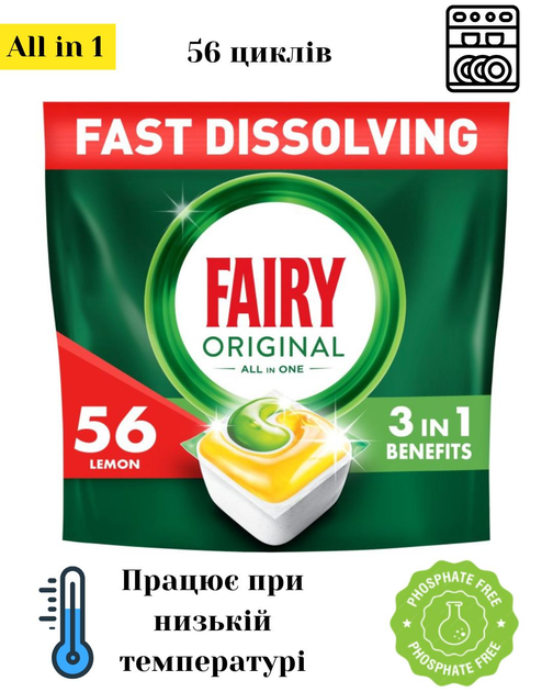 Таблетки для посудомийних машин безфосфатні Fairy Original All in One Lemon 56 шт. (8700216237352)