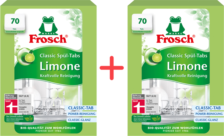Упаковка таблеток для миття посуду Frosch Classic Лимон 15 г х 70 шт х 2 пачки (4001499958694/4001499958694)