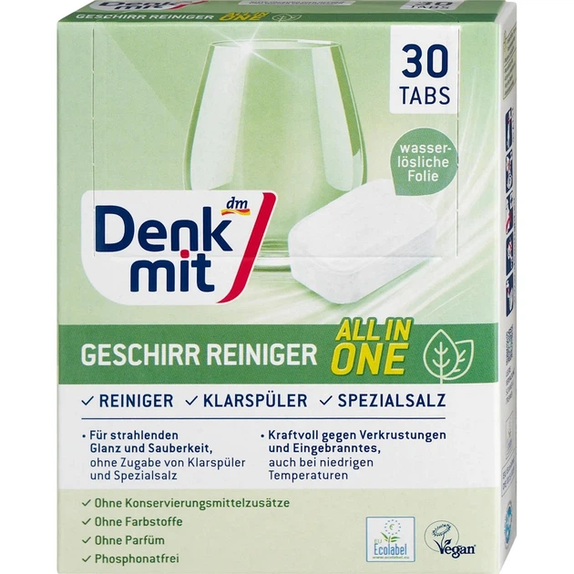 Екологінчі таблетки для миття посуду для посудомийних машин все в одному Denkmit Geschirr Reiniger All In One 30 шт