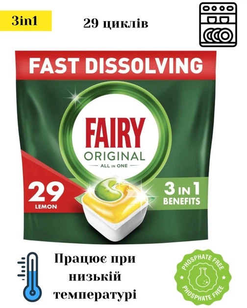 Таблетки для посудомийних машин безфосфатні Fairy Original All in One Lemon 29 шт. (8006540726891/8700216237314)