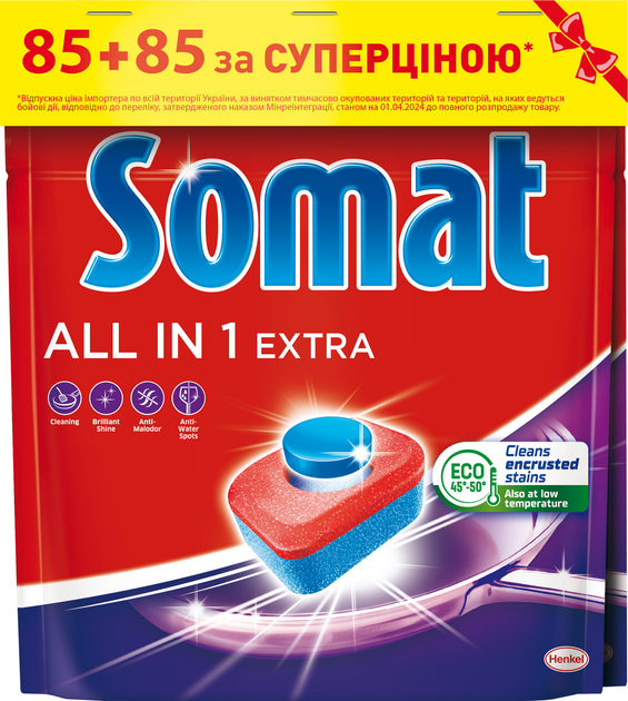 Таблетки для посудомийної машини Somat All in 1 Extra Duo 85+85 шт (9000101820676)