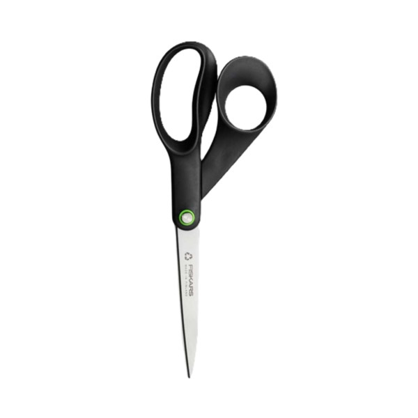 Ножиці універсальні 21 см Recycled Fiskars арт. 1058094 призначені для усіх завдань по різанню в домашніх умовах. Ножиці Recycled розроблені з урахуванням екологічних вимог, що робить їх більше екологічним вибором для сучасних потреб домашнього господарства. Кожна пара перероблених ножиць розрахована на тривалий термін служби. Виготовлені з перероблених матеріалів (78%) і целюлозного волокна