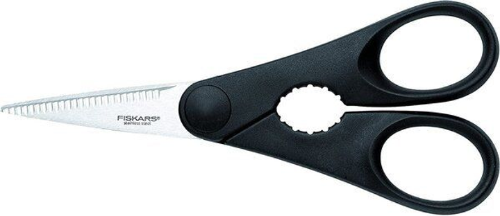 Ножиці кухонні Fiskars Essential, з відкривачкою для пляшок, 20см, нержавіюча сталь, пластик, чорний