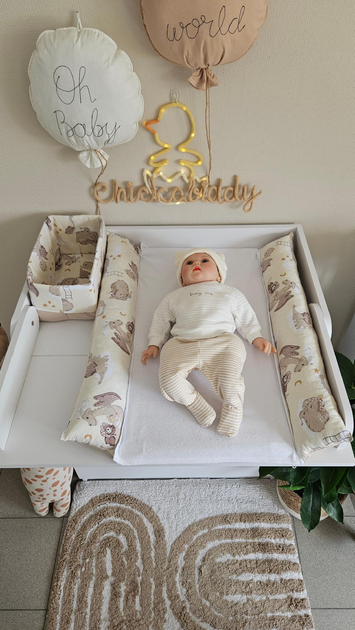 Матрасик на пеленальний комод з непромокаючою накладкою та кошиком для дрібниць Сови і зайчатка з бежевим 70*60 см