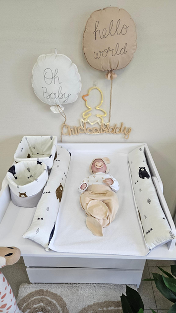 Матрасик на пеленальний комод з непромокаючою накладкою та кошиком для дрібниць Ведмеді з сірим 70*60 см