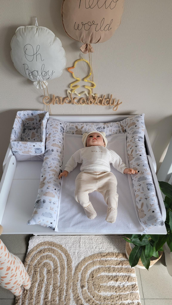 Матрасик на пеленальний комод з непромокаючою накладкою та кошиком для дрібниць Сови і Зайчики + сірий, 70*60 см, збільшений
