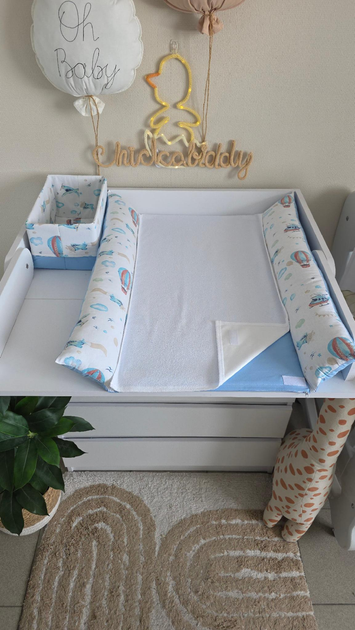 Матрасик на пеленальний комод з непромокаючою накладкою та 1 кошиком для дрібниць Повітряні кулі + блакитна бавовна, 70*60 с
