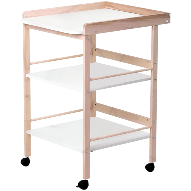 Пеленальний столик на колесах ТМ Кузя 60 х 70 х 95 см Білий+Натуральний