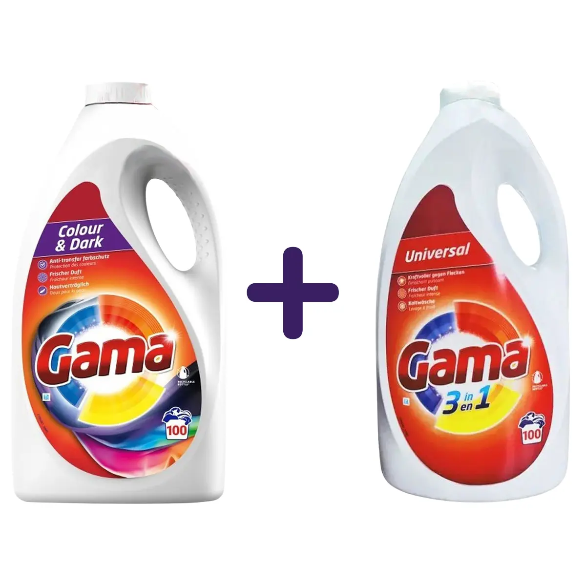Набір: гель для прання Gama Protect для кольорових та чорних речей 4.5 л + гель для прання Gama Універсальний 4.5 л