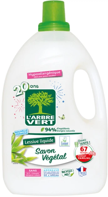 Рідкий засіб для прання L'Arbre Vert Рослинне мило 67 використань 3.015 л (3450601046353)