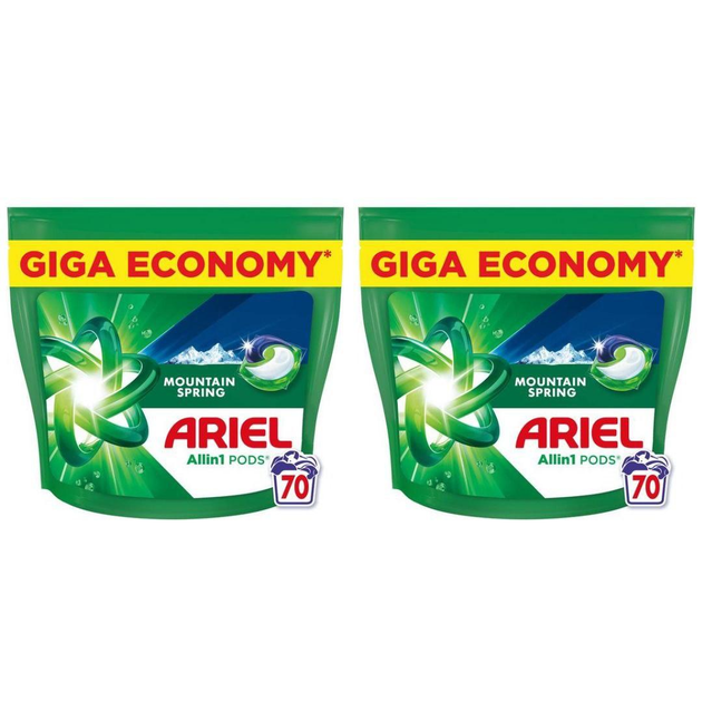 Капсули для прання Ariel Pods All-in-1 Гірське джерело 70 шт + 70 шт
