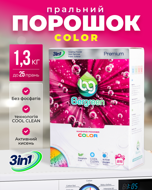 Пральний порошок для кольорових речей Bergreen Premium Color 1300 г