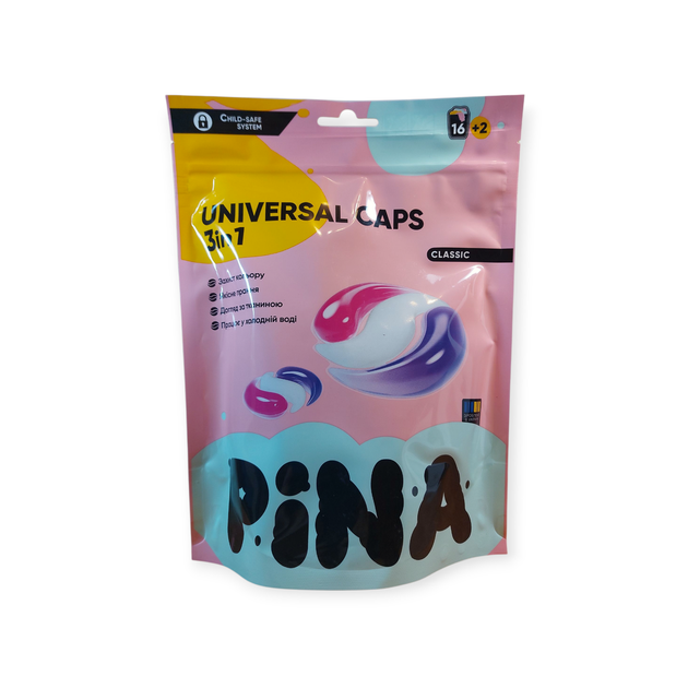 Капсули для прання PINA 18шт Universal Classic дой-пак