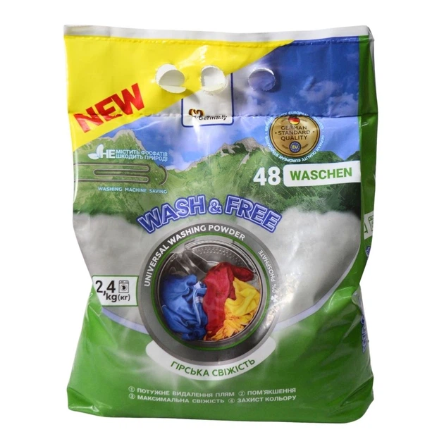 Пральний порошок Wash & Free 2,4кг Гірська свіжість