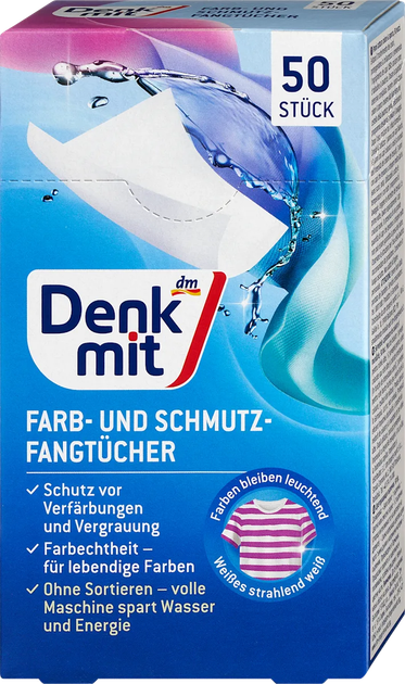 Серветки Denkmit Farb- und Schmutzfangtcher 3in1 для прання кольорових тканин, 50шт