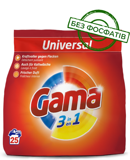 Пральний порошок Gama 3в1 Універсальний, 1.5 кг (25 прань)