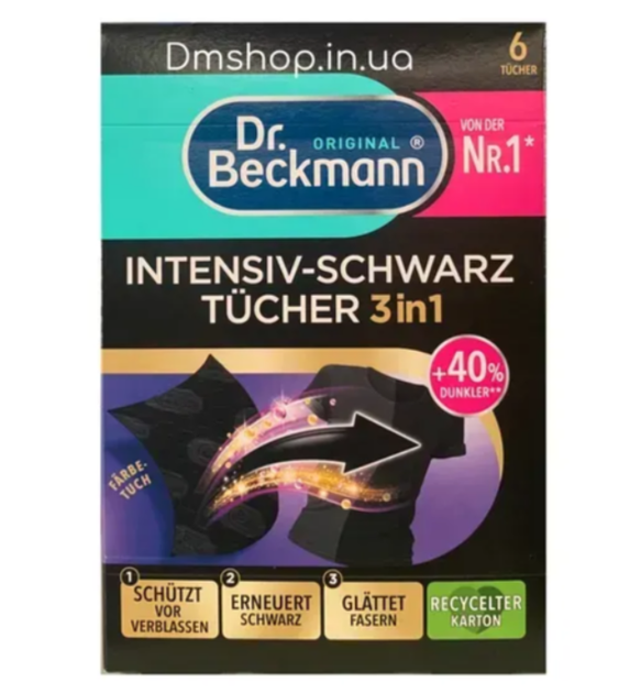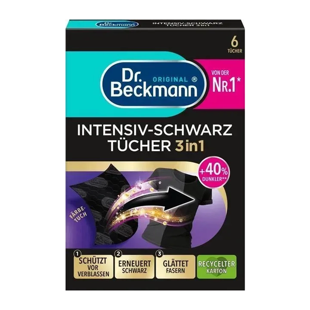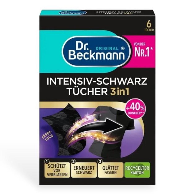 Серветки Dr. Beckmann 2в1 для відновлення чорного кольору одягу, 6 штук