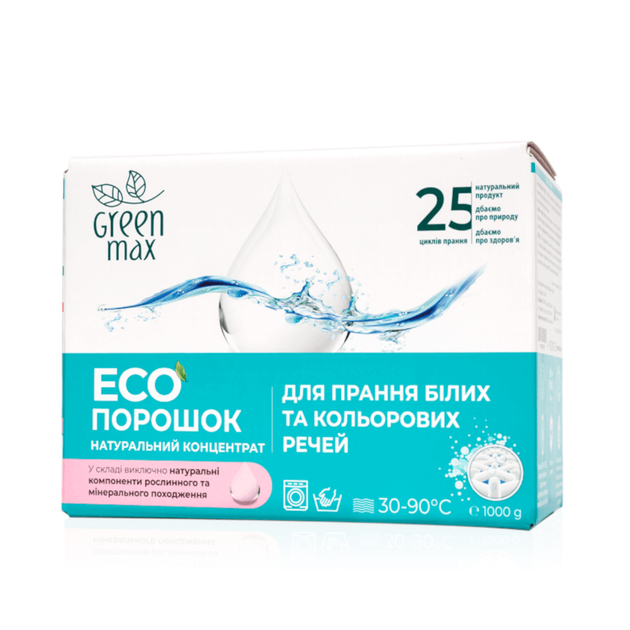 Еко порошок Green Max для прання білих та кольорових речей 1 кг
