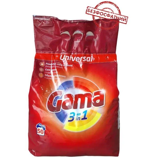 Пральний порошок Gama 3в1 Універсал 3000 гр 50 пр мягк.уп.