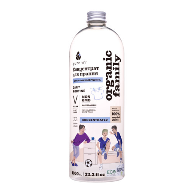 Натуральний рідкий концентрат DAILY ROUTINE для прання кольорових та білих речей з Малиною Purenn Organic Family 1 л 4751024