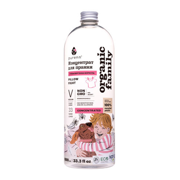 Натуральний рідкий концентрат PILLOW FLIGHT для прання кольорових та білих речей без аромату Purenn Organic Family 1 л 47510