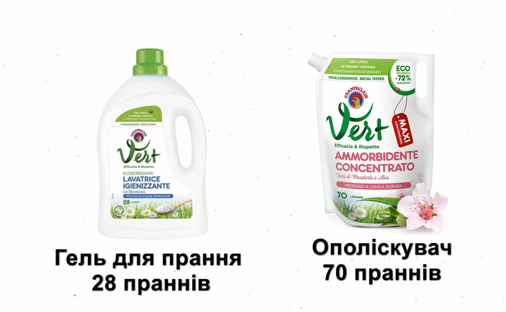 Набір еко для прання білих та кольорових промов Chante Clair Vert Bicarbonato 1428ml + ополіскувач Vert манго та алоє 70 пра