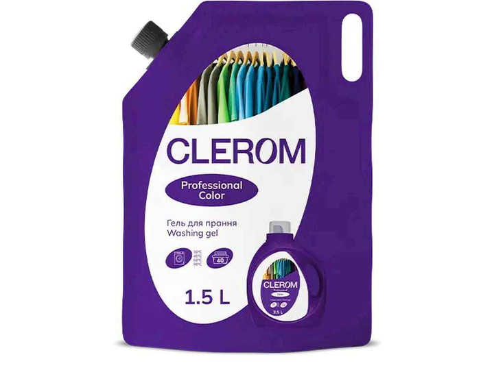 Гель для прання CLEROM 1,5л Professional "Color" дой-пак