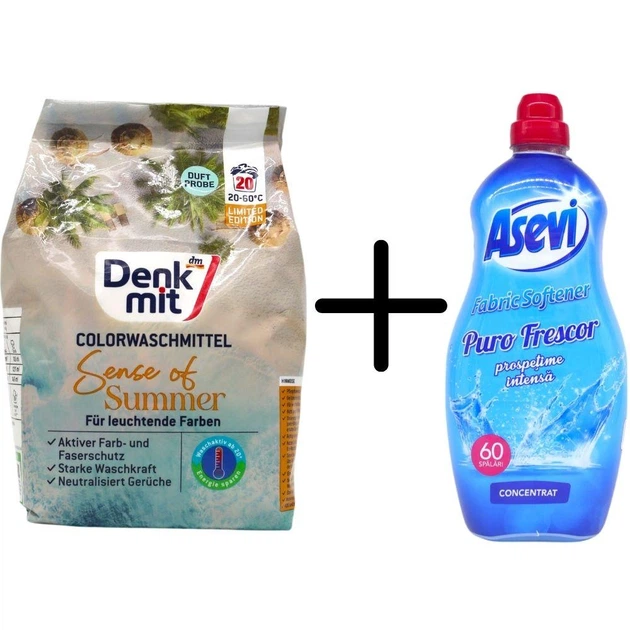 Порошок для прання кольорових речей Denkmit Sense of Summer 1,35кг 20прань + ПОДАРУНОК кондиціонер PuroFresco 1,5л 60прань