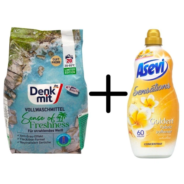 Порошок для прання білого Denkmit Sense of Freshness 1,35кг 20прань + ПОДАРУНОК кондиціонер Golden Sensations 1,44л 60прань