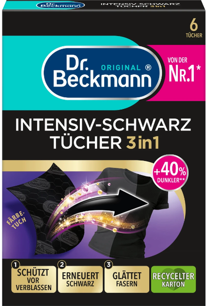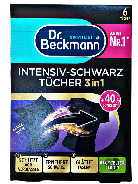 Серветки Dr.Beckmann для прання та оновлення чорного кольору Intensiv-Schwarz Tucher 6 шт