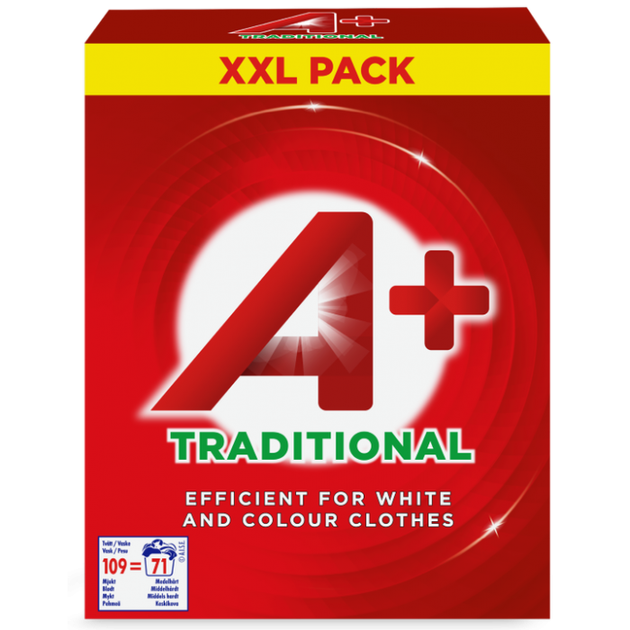 Пральний порошок A+ Traditional для білої та кольорової білизни, 5.076 кг (120 прань)