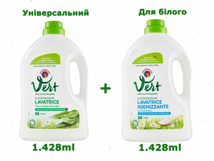 Набір еко для прання білих та кольорових промов Chante Clair Vert Bicarbonato 1428ml + Euccalipto 1428ml. Євкаліпт та Сода