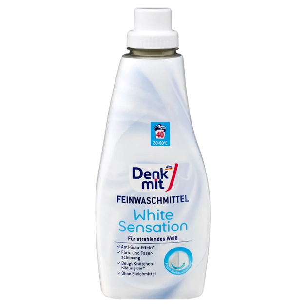 Гель для прання білого одягу Denkmit White Sensation, 1 л, 40 прань – інтенсивне відбілювання та догляд
