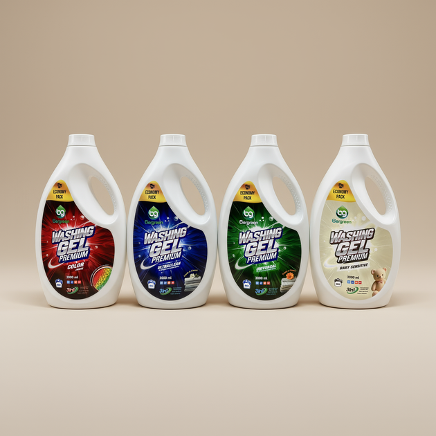 Набір гелів для прання Bergreen Washing Gel Premium 4 шт (Universal 3 л + Ultractlean 3 л + Color&White 3 л + Baby Sensitive