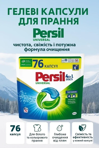 Капсули для прання Persil Universal, 76 шт (Німеччина) автомат 4в1 Universal професійні ефективні