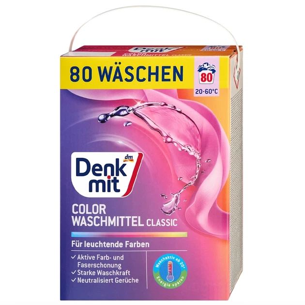 Пральний порошок для кольорової білизни Denkmit, 5,2 кг, 80 прань – збереження яскравості кольорів