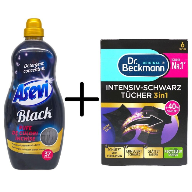 Гель для прання чорних речей Asevi Nero 1,5 л (37 прань) + ПОДАРУНОК Dr. серветки для прання чорних речей 3в1 6шт Beckmann