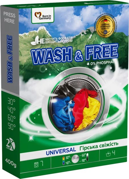 Порошок для прання Wash&Free універсальний Гірська свіжість 400 г (4262396141897)