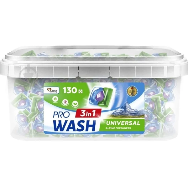 Засіб для прання у вигляді капсул "Альпійська свіжість" "ProWash" 130 шт (контейнер з ручкою) (4823128002239)