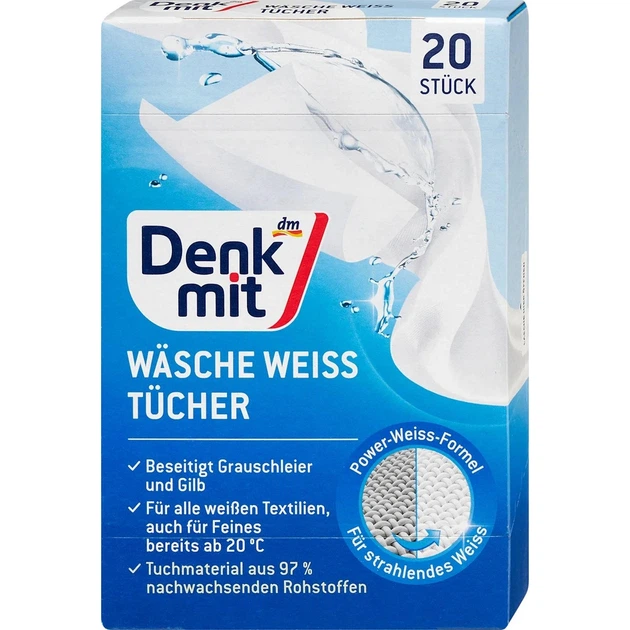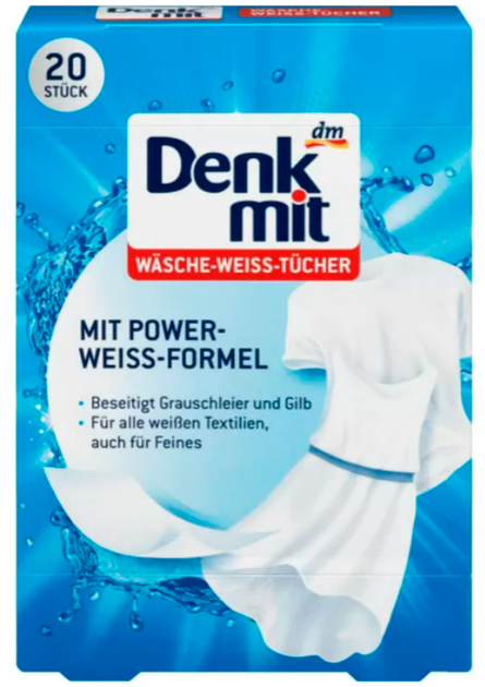 Пральні серветки для білих речей, відбілюючі Denkmit Wsche-Weiss-Tcher Mit Power-Weiss-Formel, 20 шт