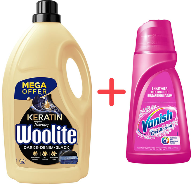 Набір Засіб для прання рідкий Woolite для чорних та джинсових тканин з кератином 4.5 л + Плямовивідник рідкий для тканин Van