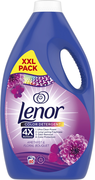 Гель для прання кольорового одягу з пом'якшувачем 2 в 1 Lenor Color Amethyst & Floral Bouquet 60 прань 3л