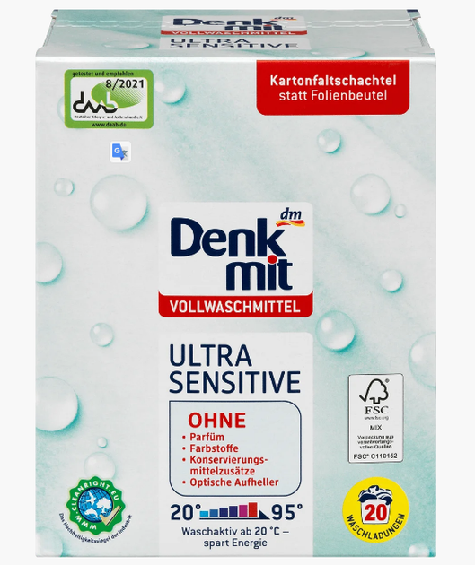 Безфосфатний гіпоалергенний порошок для прання дитячої білизни Denkmit Colorwaschmittel Pulver Ultra Sensitve 20 прань