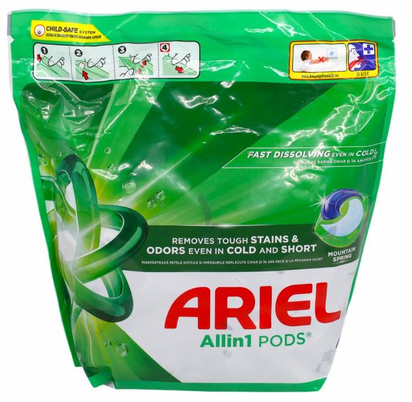 Ariel Pods All-in-1 Бренд Ariel, рекомендований компаніями Whirlpool, Electrolux, Candy і Beko, представляє таблетки для прання Ariel Все-в-1 Pods Колір Чистота І Свіжість, які забезпечують ефективне виведення плям навіть за нижчих температур. Основні характеристики: Бездоганна чистота: капсули для прання Ariel Все-в-1 Pods забезпечують ефективне виведення плям навіть за нижчих температур. Рекомендований бренд